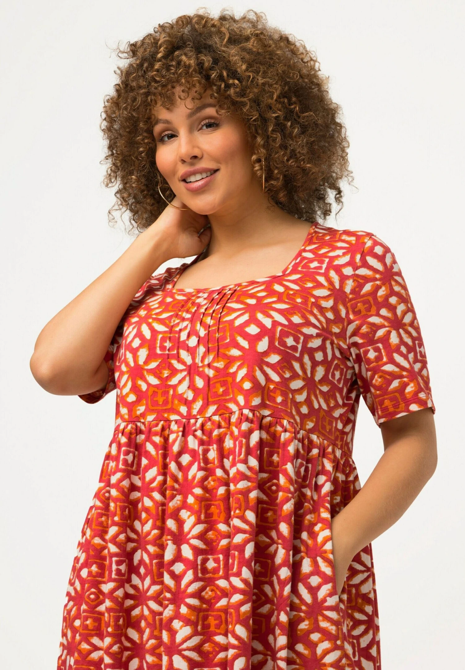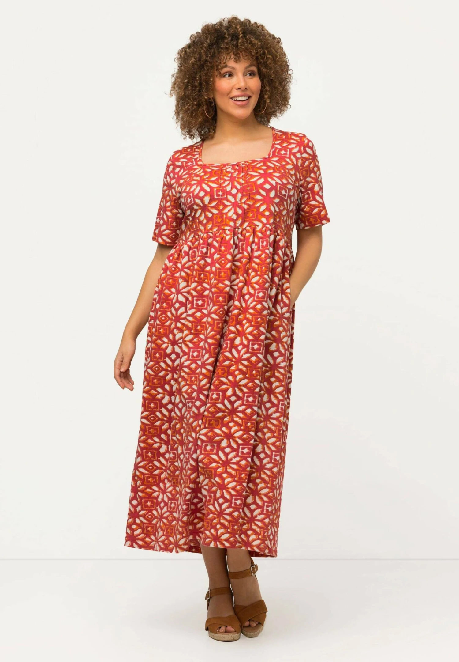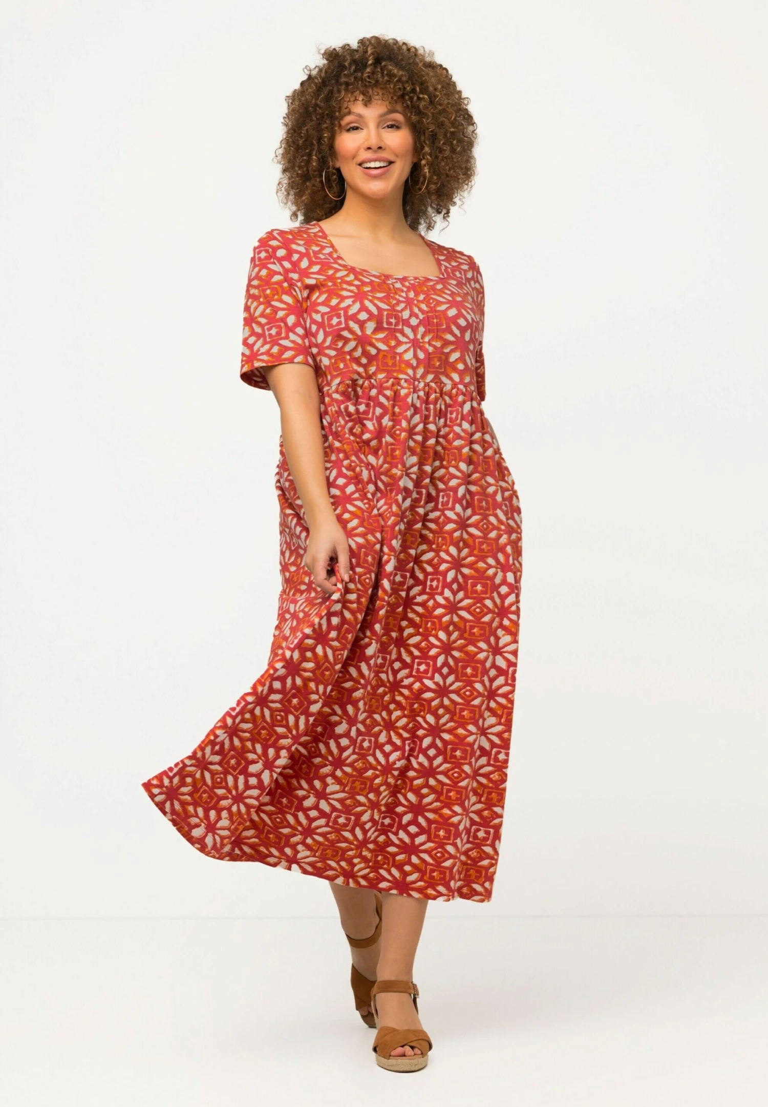 Ulla Popken A-LIJN CARRÉHALS KORTE MOUWEN – Sukienka Letnia – Kastanjebruin