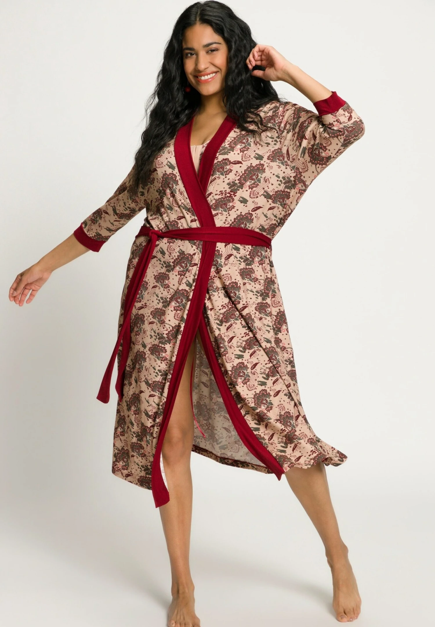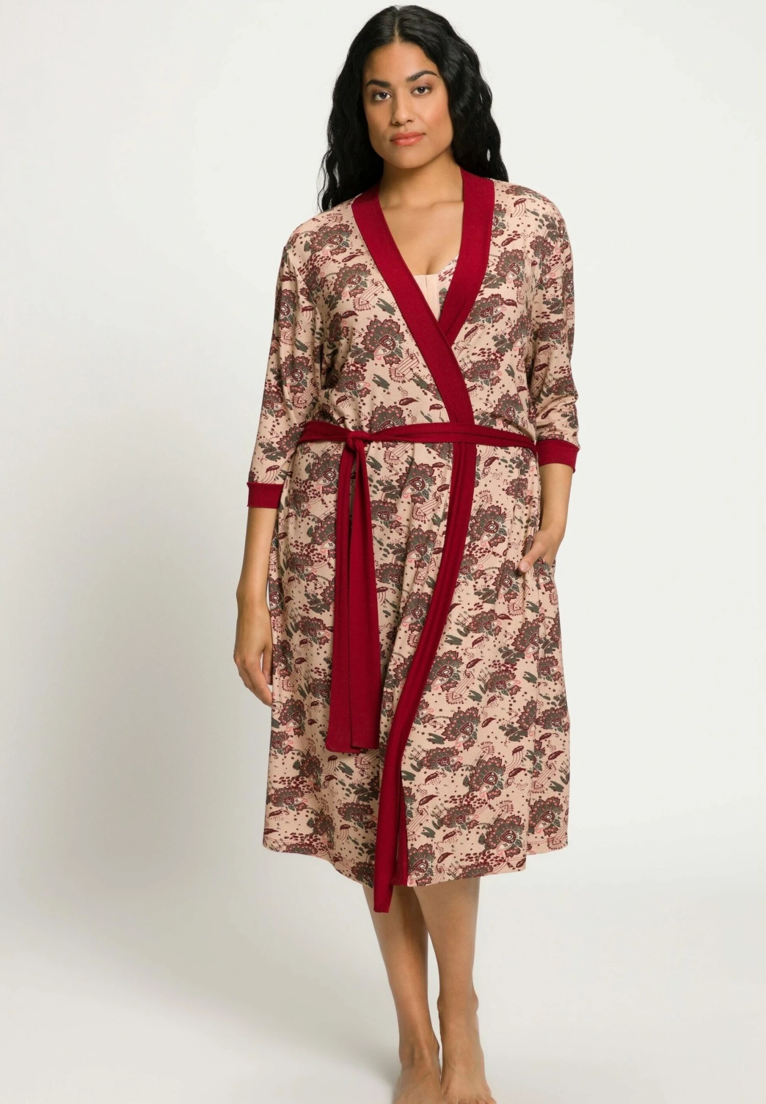 Ulla Popken À MOTIFS FORME OUVERTE MANCHES LONGUES – Szlafrok – Sable