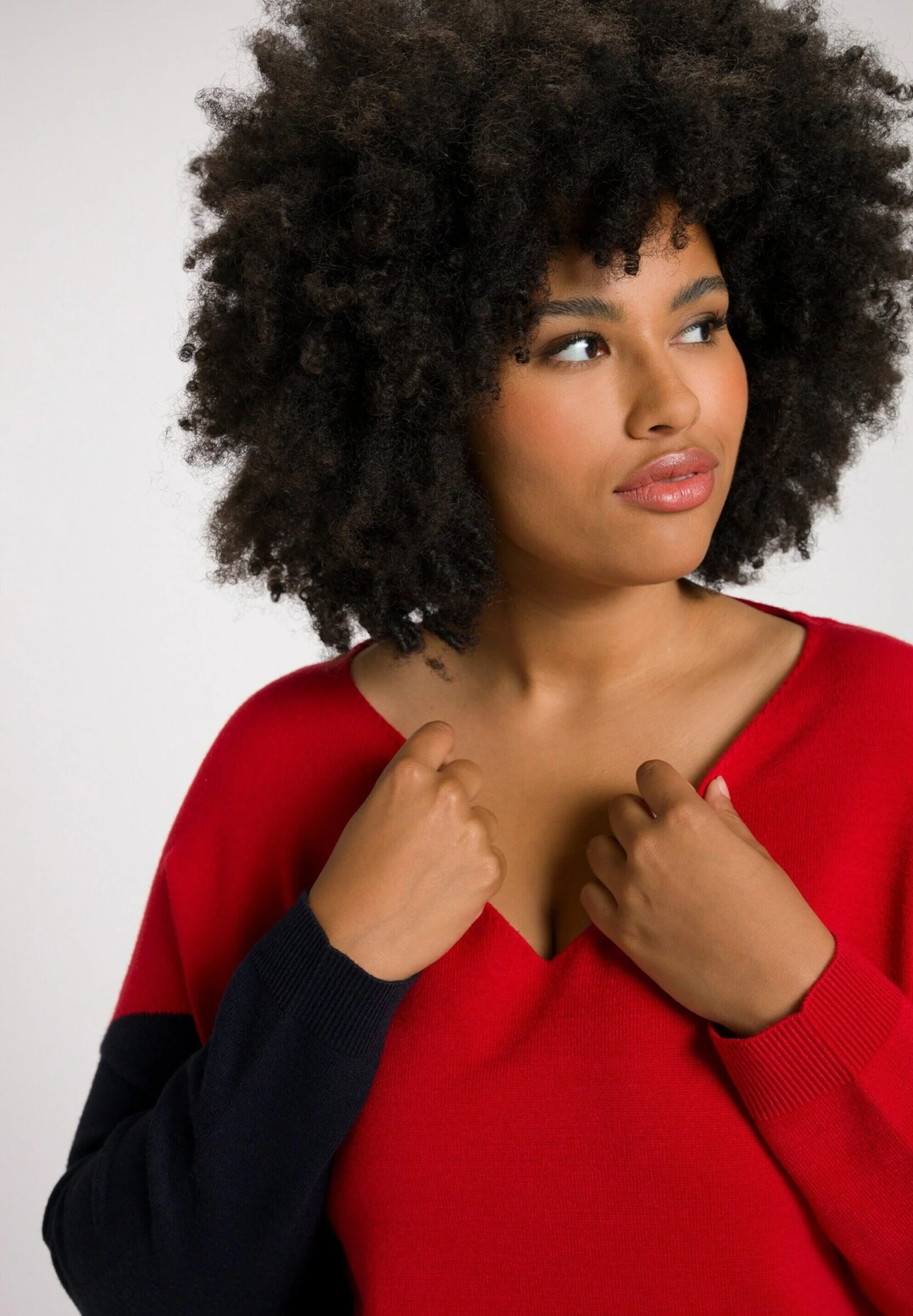 Ulla Popken COL V MANCHES LONGUES – Sweter – Bleu Marine