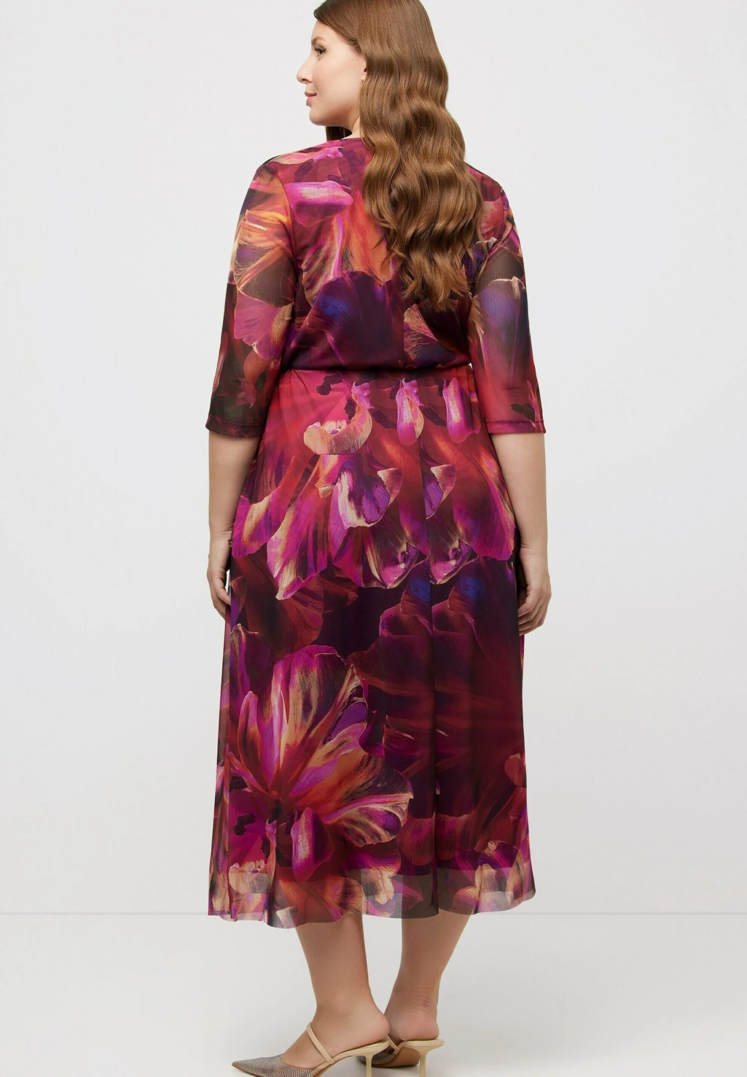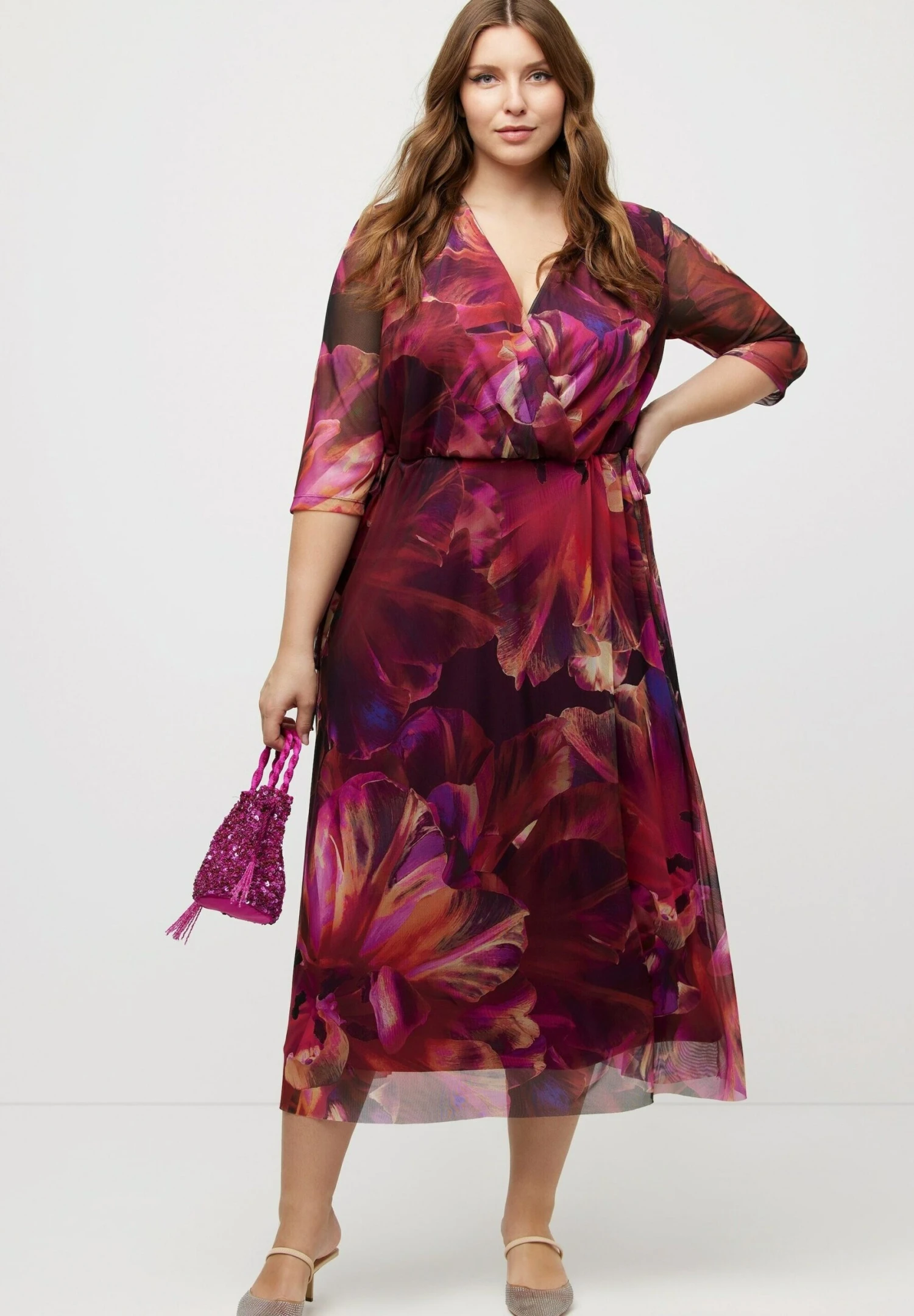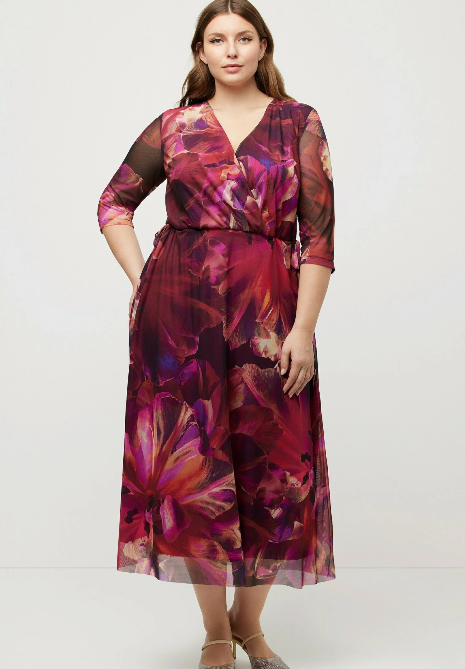 Ulla Popken DOPPELLAGIG BLÜTEN V AUSSCHNITT – Sukienka Letnia – Magenta