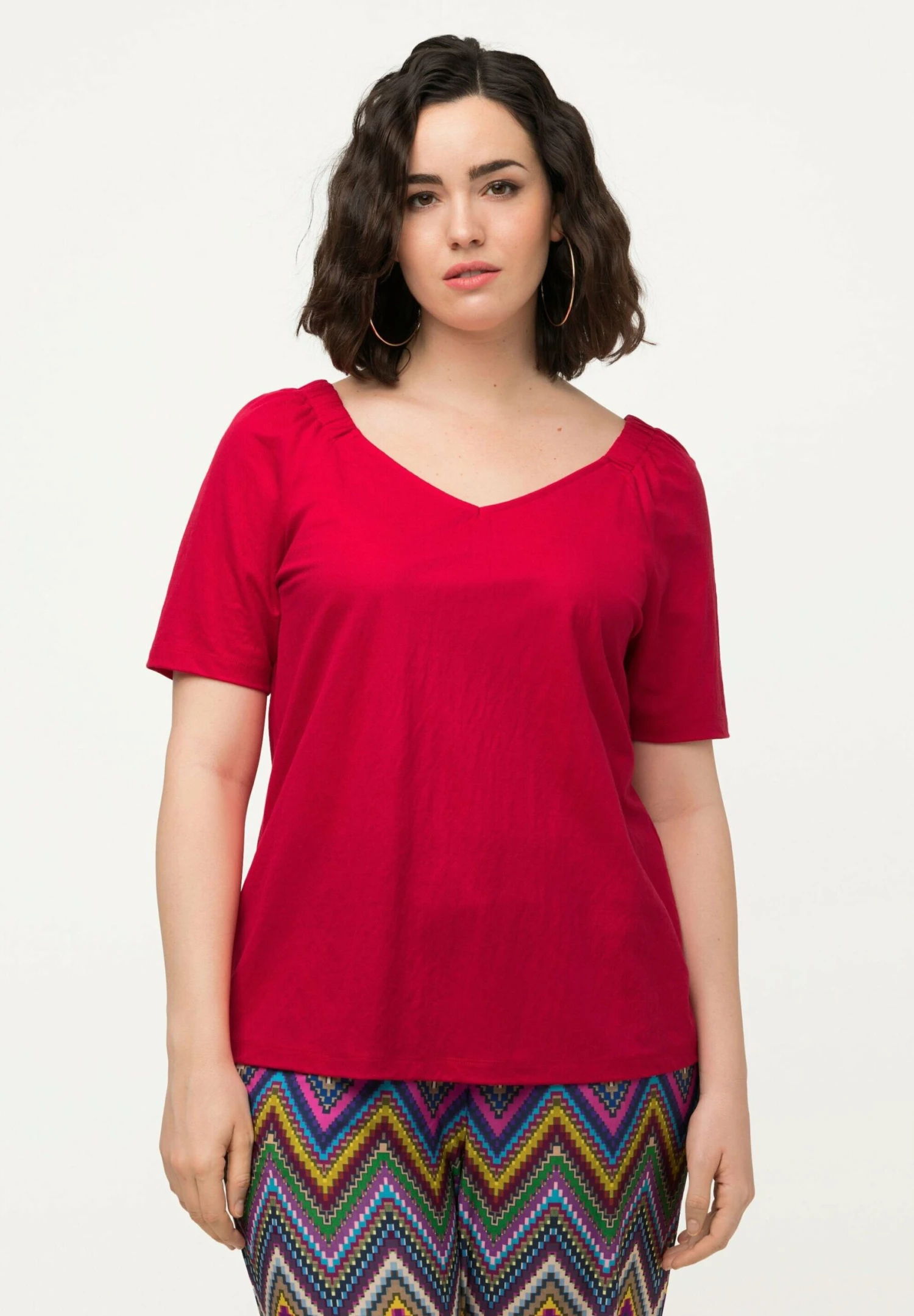 Ulla Popken FRONCES COL EN V MANCHES COURTES – T-shirt Basic – Lychee
