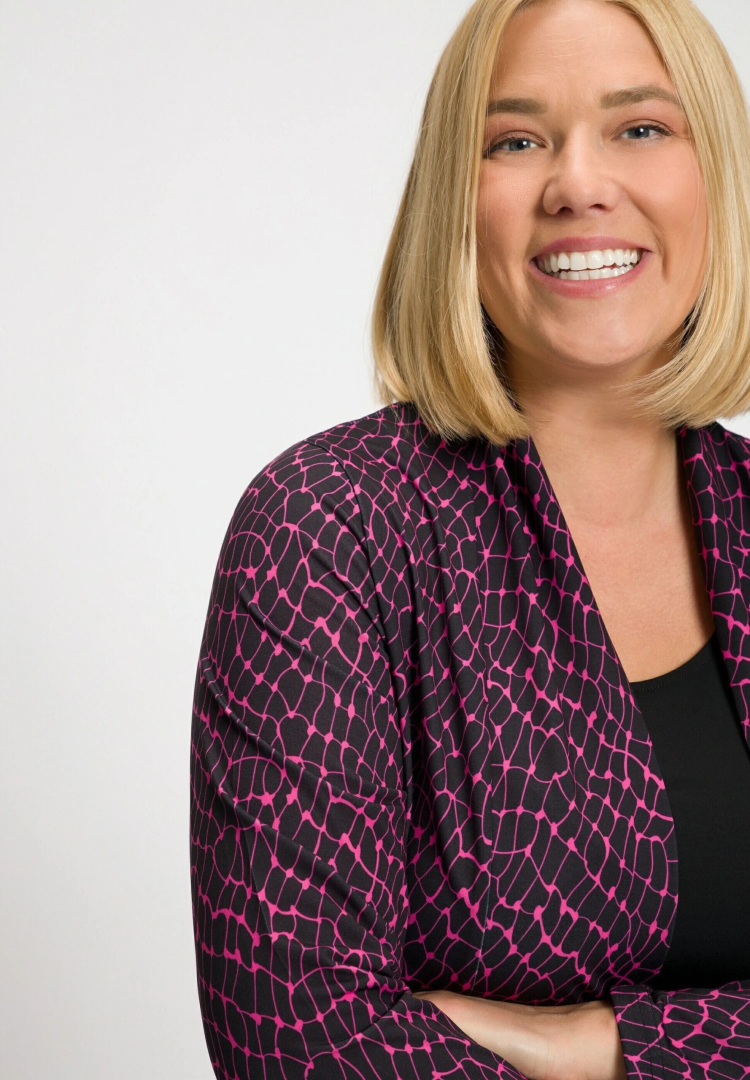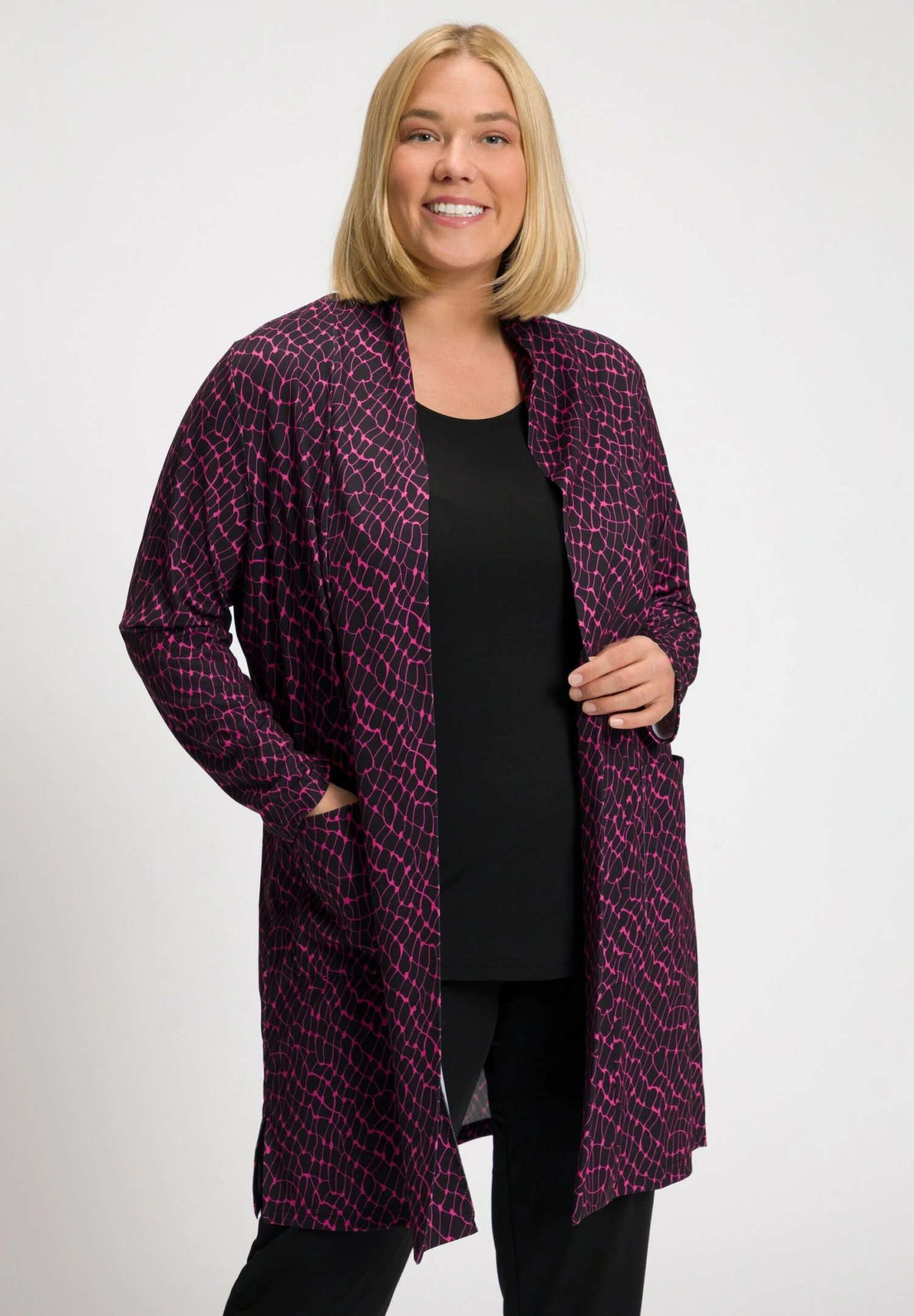 Ulla Popken MATTE GRAPHIC PRINT POCKET – Krótki Płaszcz – Hot Pink Multi